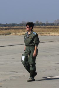 Căpitanul Andreea Oana Ardeleanu are 30 de ani şi este pilot în cadrul Escadrilei 2 Instrucţie din anul 2011.