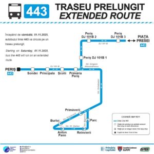 Începând de de sâmbătă, 01.11.2025, traseul liniei 443 va fi următorul: