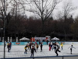 Copiii au profitat că vremea le-a permis să patineze în Cișmigiu.