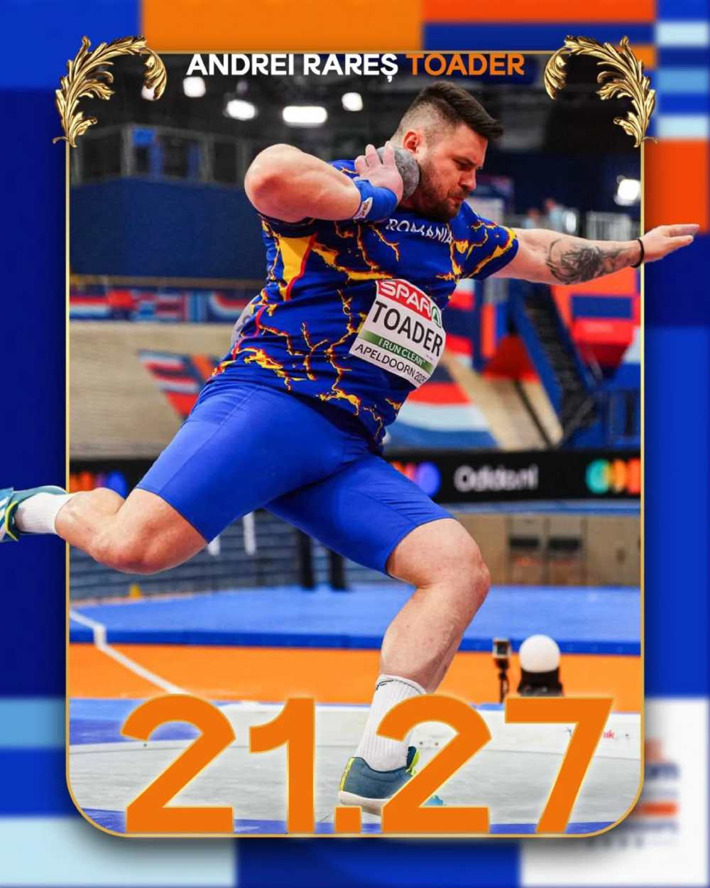 Andrei Rareş Toader a cucerit medalia de aur în proba de aruncare a greutăţii, la Campionatele Europene de atletism în sală de la Apeldoorn (Olanda).