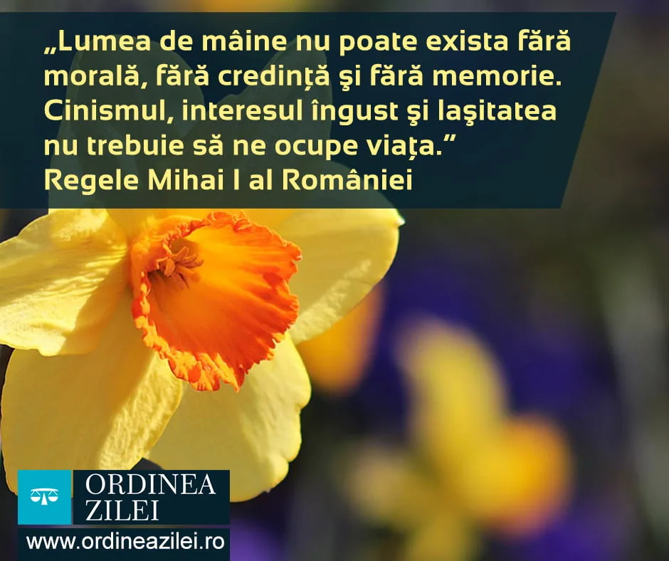 CITATUL ZILEI. Lumea de mâine nu poate exista fără morală, fără credinţă şi fără memorie. Cinismul, interesul îngust şi laşitatea nu trebuie să ne ocupe viaţa