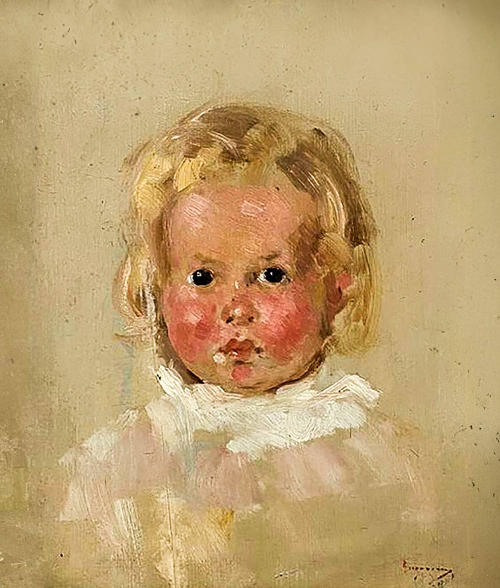 Rarisima operă de Grigorescu are o poveste extraordinară, deslușită după o amănunțită cercetare de către Ioana Beldiman, istorică de artă, specializată în opera artistului. „Este un chip surprins către vârsta de doi ani. Conform însemnării ce a figurat pe dosul ramei, «Copilul lui Grămadă», s-a putut propune, drept identitate a modelului, unul dintre personajele familiei bucovinene Grămadă, afirmată în prima jumătate a secolului XX prin mai mulți istorici, scriitori și profesori universitari. De asemenea, putem presupune că ar fi făcut parte din colecția de artă a fondatorului Băncii Naționale, economistul Eugeniu Carada (1836-1910), colecție renumită în epocă prin «calitatea Grigoreștilor»”, explică Ioana Beldiman. Tabloul este însoțit de rama sa originală.