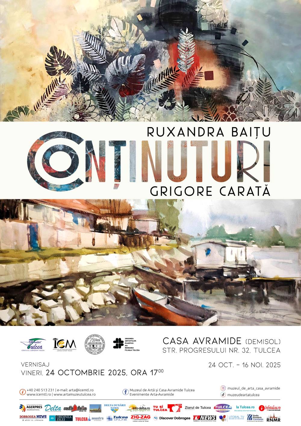 Două generații, o singură privire artistică: vineri, 24 octombrie, de la ora 17:00, artistul Grigore Carată și fiica sa, Ruxandra Baițu, deschid la demisolul Casei Avramide din Tulcea expoziția de grafică și pictură intitulată „Con-ținuturi”.