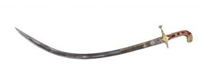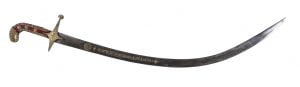 Realizată într-un atelier oriental, sabia este de tip shamshir. „Are lama curbată, cu un tăiș și muchie netăioasă. Garda are extremitățile brațelor lățite, în formă de frunze cu nervuri. Mânerul, îmbrăcat în piele presată, are capul curbat, iar plăselele din lemn sunt țintuite cu nituri acoperite cu ornamente filigranate. Teaca, din lemn, are ambele fețe acoperite cu plăci argintate, bogat ornamentate și este prevăzută cu un șnur de culoare roșie”.