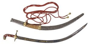 Dr. Mihaela-Cristina Verzea, curator al expoziției „Periplu istoric. De la Tudor Vladimirescu la renașterea națională” ne mărturisește că istoricul acestui obiect, clasat în categoria tezaur a patrimoniului cultural național mobil, a fost publicat în catalogul „Arme din colecția Muzeului Național de Istorie a României”, apărut la București în anul 2014, ai cărui editori sunt Nicoleta König și Florin Georgescu. Din informațiile incluse în volumul menționat articolul de față redă câteva date esențiale.