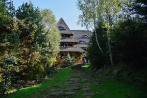 Ansamblul este scos la vânzare pentru 899.000 de euro și este format din șase case tradiționale din lemn masiv de stejar, restaurate și reconstruite cu respect pentru arhitectura maramureșeană. Fiecare dintre ele păstrează detalii autentice – prispe sculptate, grinzi vizibile, tâmplărie veche refăcută manual – oferind în același timp confortul unei locuințe moderne. Împreună, aceste case alcătuiesc un mic sat în sine, un spațiu care respiră autenticitate și liniște, conceput atât pentru locuire, cât și pentru primirea oaspeților.
