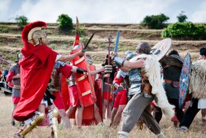 Organizatorii anunță că timp de două zile, sâmbătă şi duminică, peste 100 de războinici „daci” şi „romani” vor reînvia atmosfera de acum 2000 de ani, invitând publicul într-o călătorie în timp.