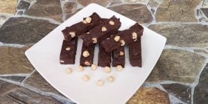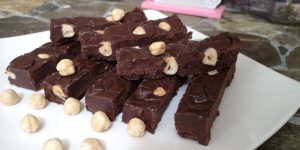 După ce am lăsat ciocolata să se odihnească, folosim un cuțit cu lama ușor umezită pentru a tăia tablete din acest desert absolut delicios.