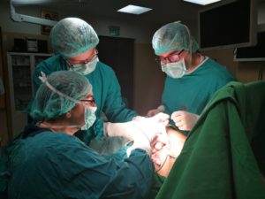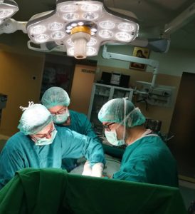 O echipă de medici formată din dr. Sebastian Grădinaru, medic primar chirurg, dr. Cătălin Aliuş, medic chirurg, şi dr. Ina Petrescu, medic primar în chirurgie plastică, estetică şi microchirurgie reconstructivă, a realizat două mastectomii subcutane cu prezervarea complexului areolo-mamelonar, urmate de reconstrucţie imediată cu implant.