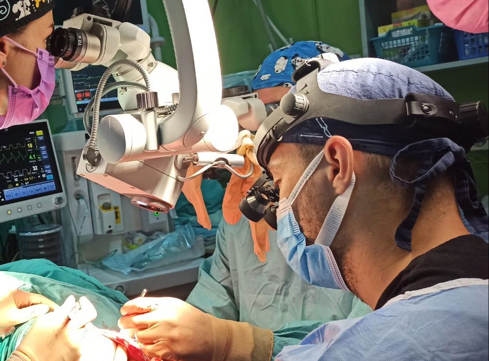 Intervenţia chirurgicală extrem de complexă a durat aproximativ zece ore şi a constat în toaleta chirurgicală a scalpului şi a defectului de la nivelul capului, sub anestezie generală, disecție pentru evidențierea vaselor de sânge (artere şi vene), prepararea acestora urmată de arteriorafie și venorafie, hemostaza, sutură la piele. Aproape toată intervenția s-a derulat sub magnificaţie (lupe inițial și apoi, 6-7 ore, microscop).