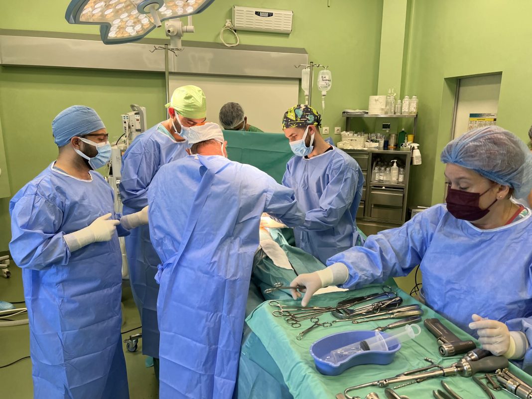 Operația a fost realizată de Dr. Dorin Sălcudeanu şi Asist. Univ. Dr. Pal Fodor, medici primari Ortopedie şi Traumatologie. Alături de cei doi specialiști s-au aflat și Şef Lucrări Dr. Raluca Fodor, medic primar ATI, Dr. Daniel Dacher, Dr. Denis Pasc, medici rezidenţi ortopedie şi traumatologie,  Dr. Balasz Hunor, medic rezident ATI.