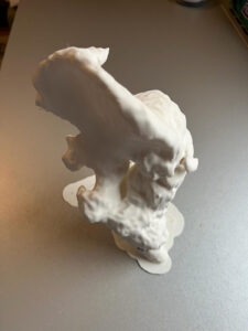Această machetă a fost efectuată pe baza unui CT cu reconstrucţie şi a ajutat în pregătirea preoperatorie, stabilirea exactă a tehnicii chirurgicale, a mărimii şi anatomiei structurii osoase.