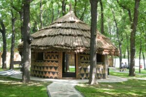 Zona africană este reprezentată de o colibă tradițională din lut, decorată cu obiecte specifice și pictată de către elevii Liceului de Artă „Marin Sorescu” din Craiova. De asemenea, băncile din jurul colibei sunt deosebite, atât forma cât și culoarea acestora fiind specifice zonei africane, iar în copacii din jurul colibei au fost instalate hamace, unde tinerii se pot relaxa în voie.