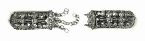 Piesa, clasată în categoria tezaur, confecţionată prin tehnica gravării, este alcătuită din două părţi fiecare cu o lungime de 154 mm, o lăţime de 53 mm şi greutăţi de 208, respectiv 251 g. Ornamentaţia celor două elemente constituente ale obiectului este identică şi este reprezentată de motive florale şi vegetale stilizate ale florilor şi frunzelor de Piciorul cocoşului.