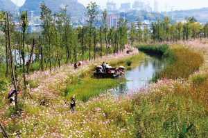 Au fost concepute și proiectate terase ecologice care permit terenului și apei să se întâlnească, explică Kongjian, sau „Arhitectul orașelor burete”, așa cum este cunoscut.