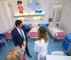 Noua secție de Pediatrie are cinci saloane, pe categorii de vârstă, și patru rezerve, inclusiv pentru boli contagioase. De asemenea, au fost amenajate spații și pentru: cabinet medic, sală de tratament și consultații, oficiu medical, oficiu alimentar, cabinet pentru asistenți, precum și pentru prepararea hranei celor mici.