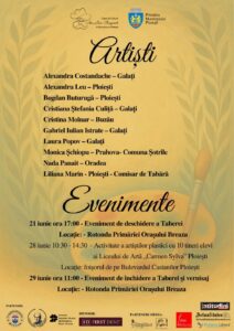 - 28 iunie 2025, orele 10:30 – 14:30 – Activitate interactivă a artiștilor plastici cu 10 tineri elevi ai Liceului de Artă „Carmen Sylva” Ploiești