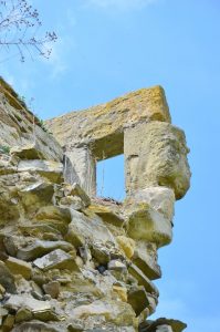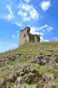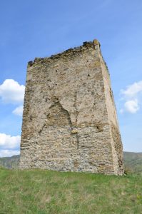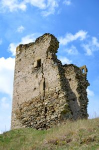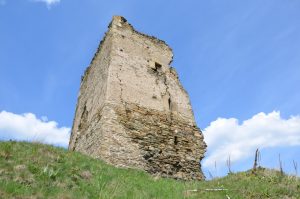 Latura de nord a turnului s-a prăbușit după mijlocul secolului XX. Un ancadrament de intrare din piatră fasonată a fost găsit prin cercetarea arheologică, dar a rămas nepublicat. A fost înconjurat spre vest de un val de pământ și șanț (l. = 4 m), care a suferit apoi o astupare și refacere de val cu palisadă, la 30 m distanță. Inițial a avut circa 150 m2, ulterior a ajuns la 500 m2. În interior nu s-au descoperit decât câteva fragmente ceramice de secol XIV” (Castelarea carpatică. Fortificații și cetăți din Transilvania și teritoriile învecinate (sec. XIII-XIV), Cluj-Napoca, 2005, p. 529)”.