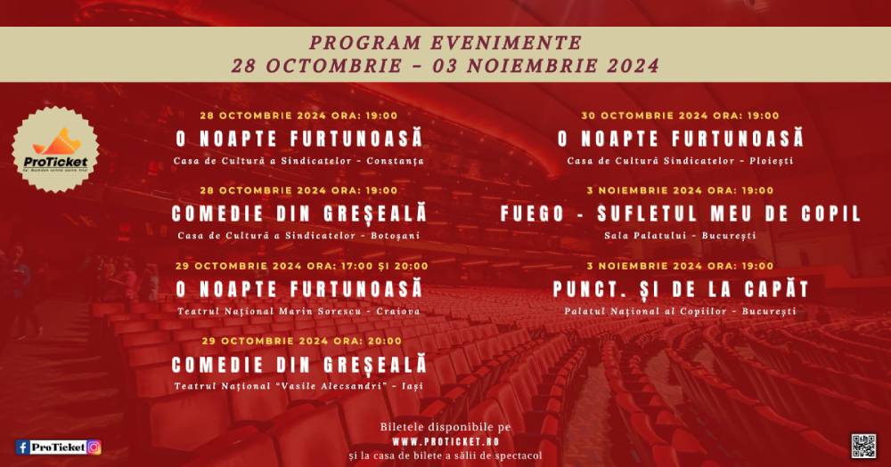 Bilete disponibile la toate spectacolele pe https://proticket.ro/.